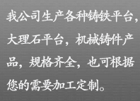 自從05年和我公司合作了感覺很好,我公司生產(chǎn)的劃線平臺,焊接平臺,T型槽平臺,鉚焊平臺,電機(jī)試驗平臺等系列產(chǎn)品,是用于工件、設(shè)備檢測、劃線、裝配、焊接、組裝、鉚焊的平面基準(zhǔn)量具。